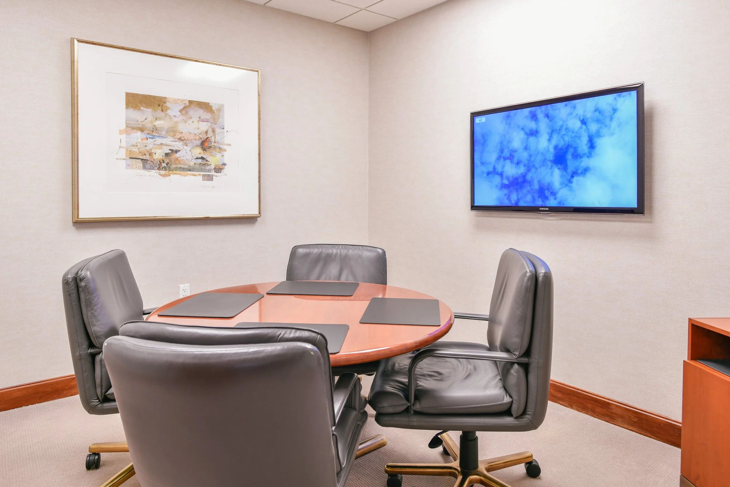 This meeting room on the 12th Floor of the North Tower Morristown is an exceptional smaller meeting room ideal for personal financial planners, attorneys, and other professionals looking for a high quality consultation setting. This quiet, luxurious meeting room features a 54” LED monitor and also offers direct access to the client lounge area making it suitable for breakouts and consultations.